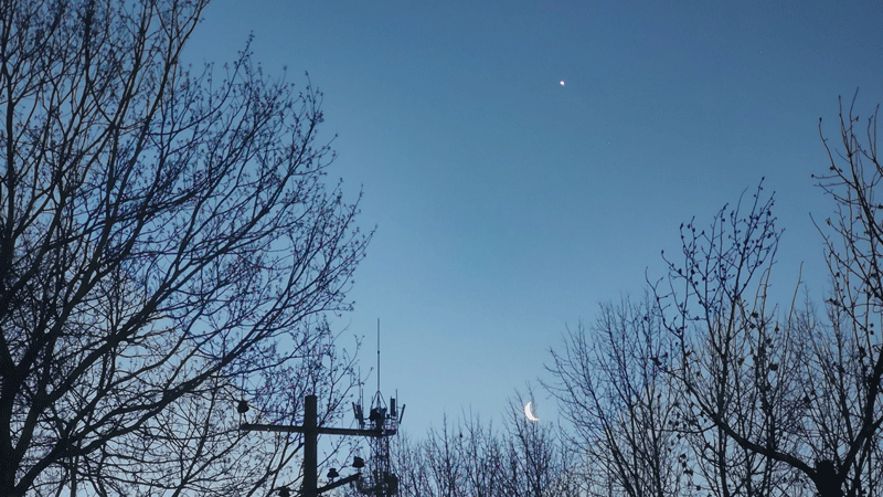 高原生活的精美片段值得处处收藏。有时是凌晨7点,香蕉状的月亮,与启明星一道,挂在树梢,划过山坡,像一首生动的现代诗,在构图中栩栩如生。与此同时,客车停靠的大坪上,伴随着天空逐步苏醒,准备上山的人群慢慢汇集,最后人声鼎沸。